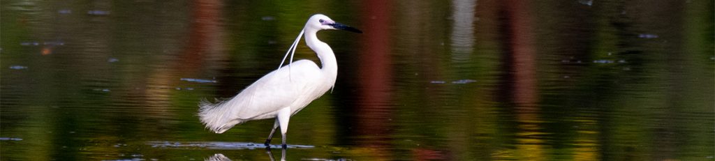 It is a white bird adorned with buff plumes in the breeding season. It nests in colonies, usually near bodies of water and often with other wading birds. The nest is a platform of sticks in trees or shrubs. Cattle egrets exploit drier and open habitats more than other heron species. Their feeding habitats include seasonally inundated grasslands, pastures, farmlands, wetlands, and rice paddies. They often accompany cattle or other large mammals, catching insect and small vertebrate prey disturbed by these animals. Some populations are migratory and others show post-breeding dispersal.